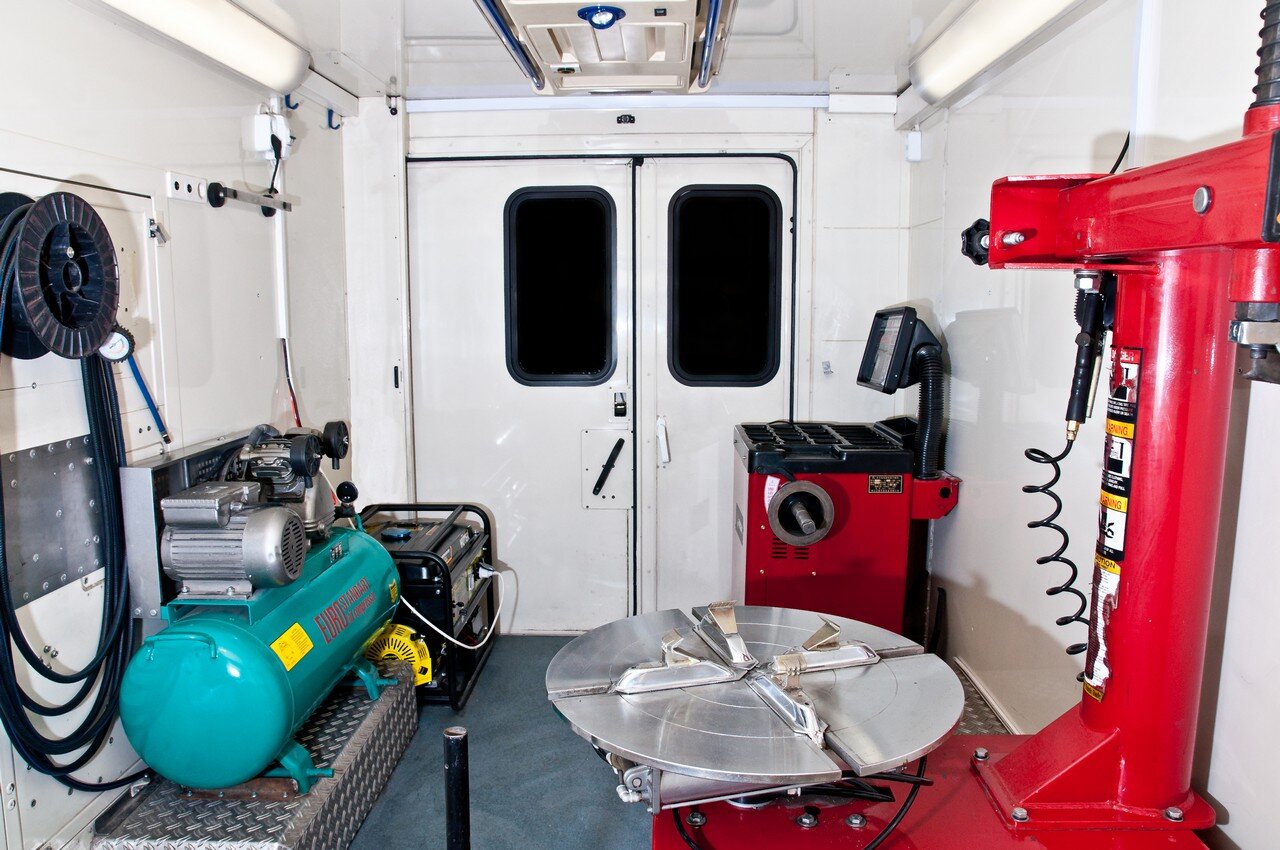 Стационарное оборудование, необходимое для передвижного автофургона для шиномонтажа