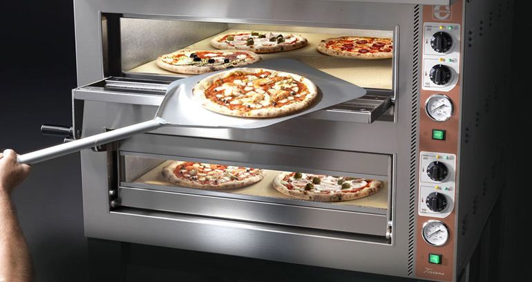- подовые: ориентируйтесь на желаемую производительность. Подовые печи, как правило, идут на 1, 4, 6, 9 пицц 34-35 см, или имеют формат 1+1, 4+4 (то есть имеют две камеры).
