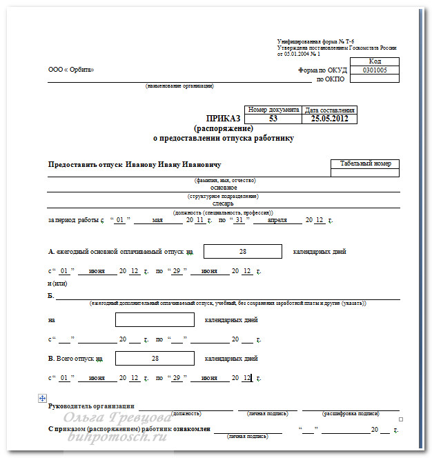 Образец приказа об отпуске — gifВопросы и ответы по форме