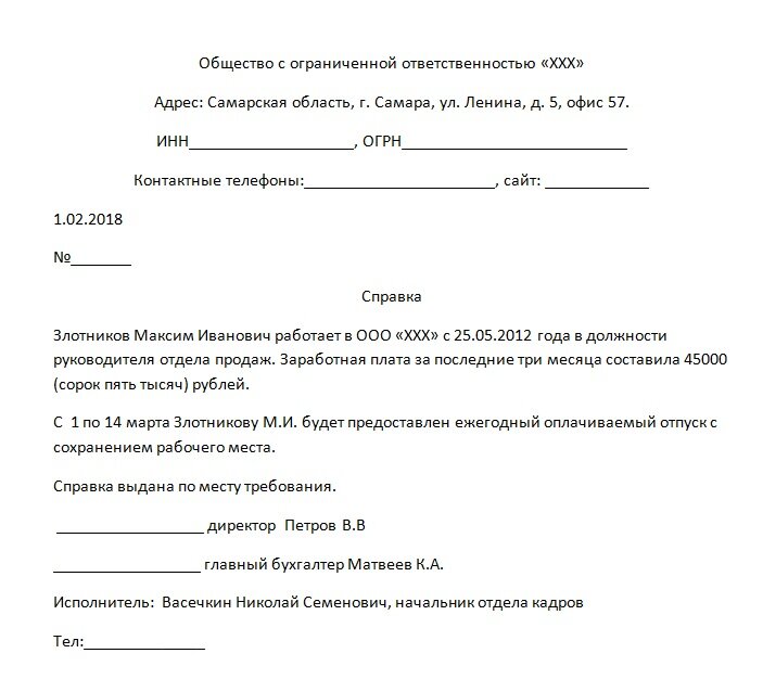 - Образец справки с места работы (ооо)