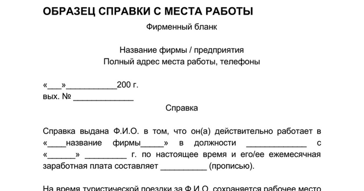 - Справка с места работы — бланк и образец заполнения