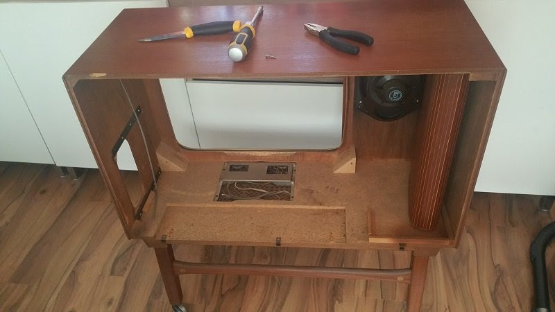 Вынуть всю начинку из телевизора, оставив лишь корпус. Как-то жалко выкидывать, если красивый корпус был, так почему бы не использовать старый телевизор еще с пользой.