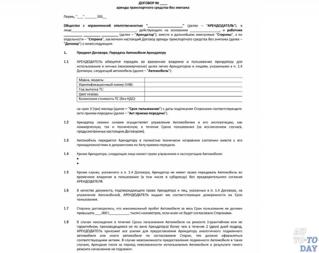 - Шаблон договора аренды автомобиля — шаблоны PDF