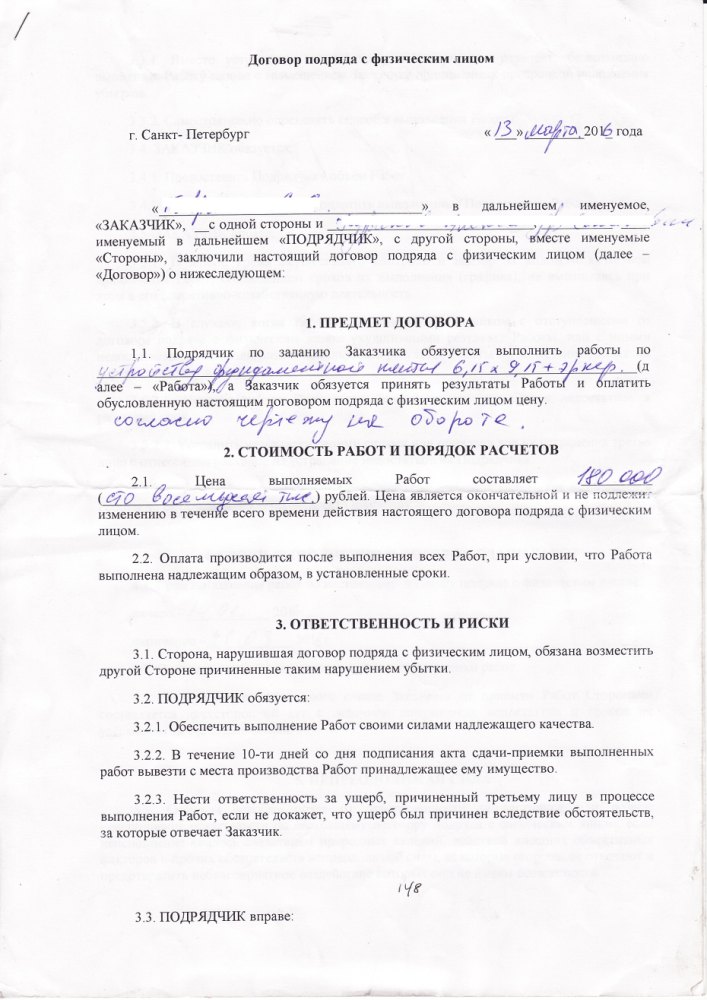 - ОБРАЗЕЦ ДОГОВОРА БЫТОВОГО ПОДРЯДА