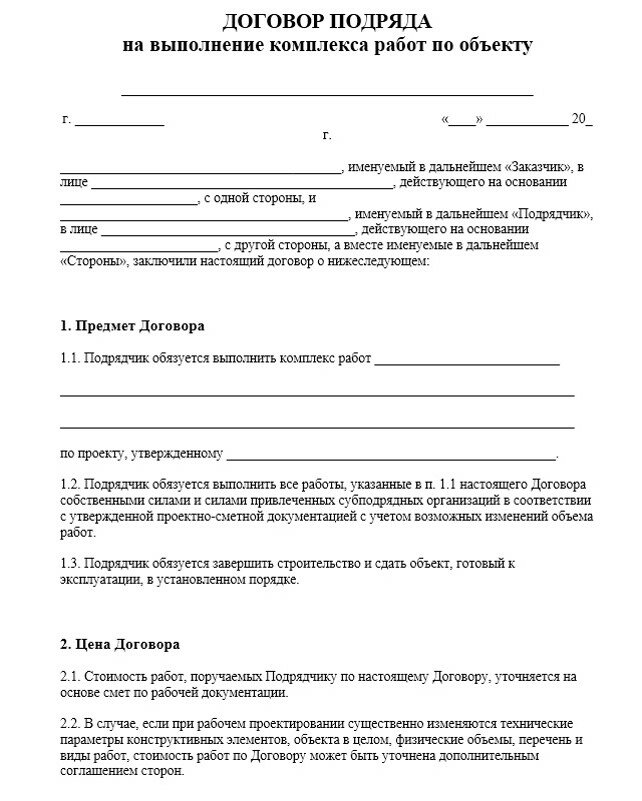 1.1. Заказчик поручает, а Подрядчик принимает на себя обязательство выполнить ремонтно-строительные работы на объекте, расположенном по адресу: ____________________________________ (далее именуется «Объект»).