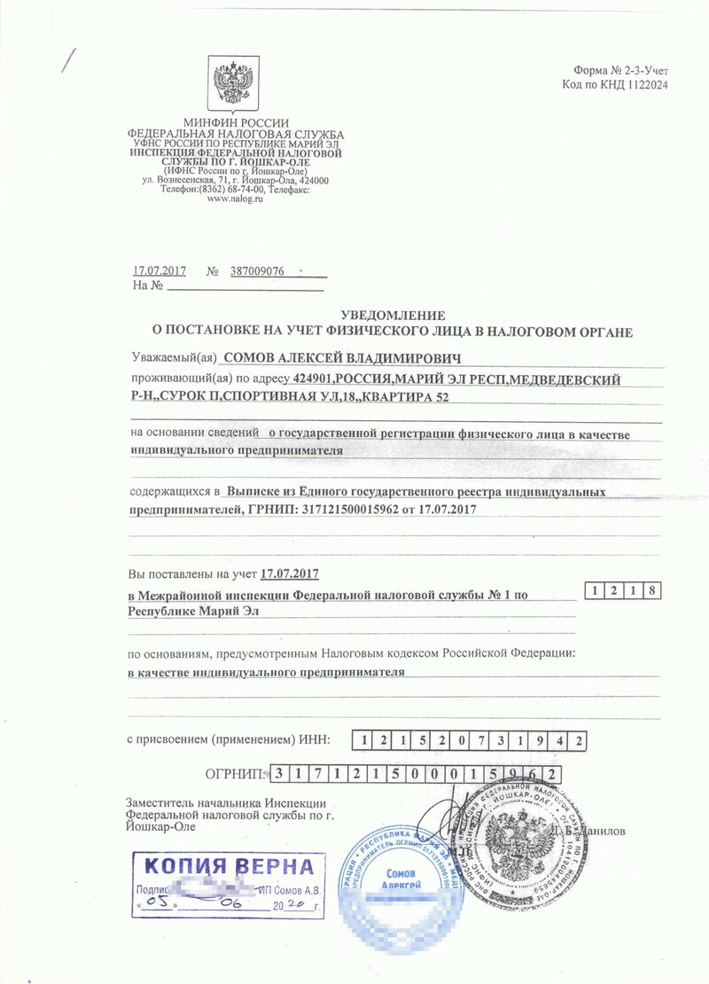 - Свидетельство о постановке на учет в налоговом органе подтверждает постановку на учет в налоговом органе и присвоение физическому лицу идентификационного номера налогоплательщика (ИНН). Начиная с 1 января 2017 года, указанное Свидетельство выдается без применения защищенных полиграфических бланков.