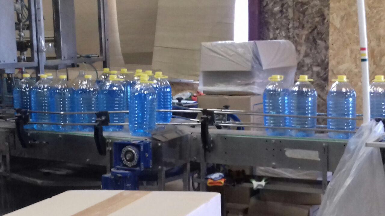 Емкости подготовки растворов и смешения готового продукта, 3. Система розлива в тару 4 литра, и 5 литров, объемом производства от 100 баллонов в час до 800 баллонов в час, с укупором. 4. Аппарат выдува тары, 5. Транспортерные линии (по желанию заказчика), 6. Аппарат нанесения этикеток в автоматическом режиме. 7. Накопительный стол, 8. Термотонель с группиратором или без такового (по желанию заказчика). 9. Компрессор с воздушным фильтром. Наша линия полностью сертифицирована, имеет декларацию соответствия оборудования. В декларации указано, что производителем линии является ООО «Орис плюс».