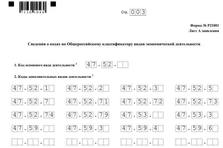 При этом прежний код основной деятельности вы можете оставить в качестве дополнительного. - лист Е страницу 2 заполняете тогда, когда вам надо исключить какой-то код.