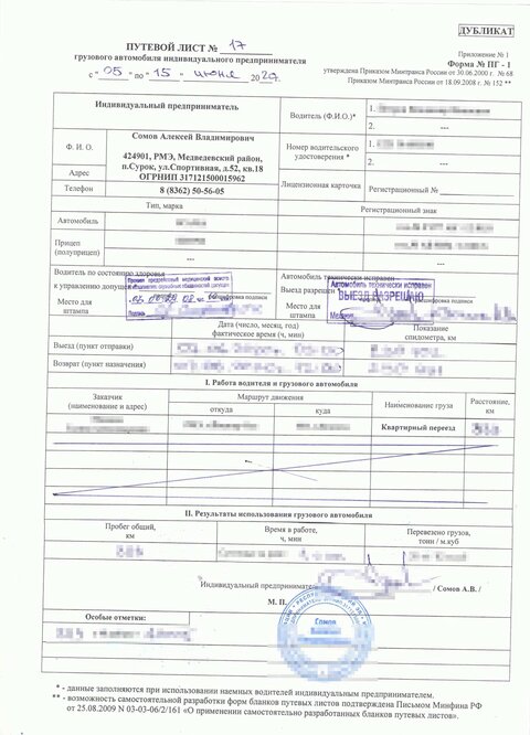 ΠΎΠ΄ΠΈΠΌΠ° Π²ΠΎΠ΄ΠΈΡΠ΅Π»Ρ Π² ΡΠ΅ΠΉΡΠ΅ Π΄Π»Ρ ΠΏΠΎΠ΄ΡΠ²Π΅ΡΠΆΠ΄Π΅Π½ΠΈΡ ΡΠΎΡΡΡΠ΄Π½ΠΈΠΊΠ°ΠΌ ΠΠΠΠΠ Π·Π°ΠΊΠΎΠ½Π½ΠΎΡΡΠΈ ΠΈΡΠΏΠΎΠ»ΡΠ·ΠΎΠ²Π°Π½ΠΈΡ Π°Π²ΡΠΎ, ΠΏΠ΅ΡΠ΅Π²ΠΎΠ·ΠΊΠΈ ΠΏΠ°ΡΡΠ°ΠΆΠΈΡΠΎΠ² ΠΈΠ»ΠΈ Π³ΡΡΠ·Π°. ΠΡΠ°Π²ΠΈΠ»ΡΠ½ΠΎ Π·Π°ΠΏΠΎΠ»Π½Π΅Π½Π½Π°Ρ ΠΏΡΡΠ΅Π²ΠΊΠ° ΠΏΠΎΠ΄ΡΠ²Π΅ΡΠΆΠ΄Π°Π΅Ρ, ΡΡΠΎ ΡΡΠ°Π½ΡΠΏΠΎΡΡΠ½ΠΎΠ΅ ΡΡΠ΅Π΄ΡΡΠ²ΠΎ ΠΈΡΠΏΡΠ°Π²Π½ΠΎ, ΠΏΡΠΎΡΠ»ΠΎ ΡΠ΅Ρ