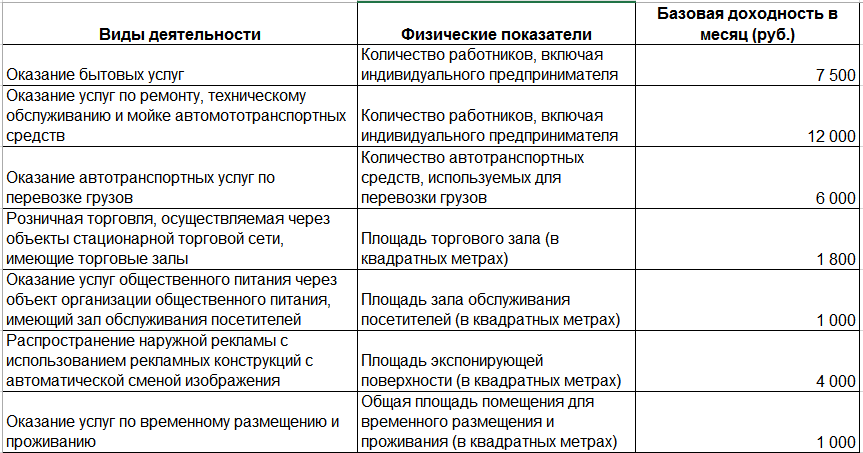 - ЕНД — налог рассчитывается исходя из базовой доходности, указанной в Налоговом кодексе РФ;