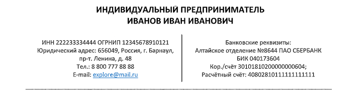 - используем фирменный бланк (при наличии) или проставляем реквизиты ИП;