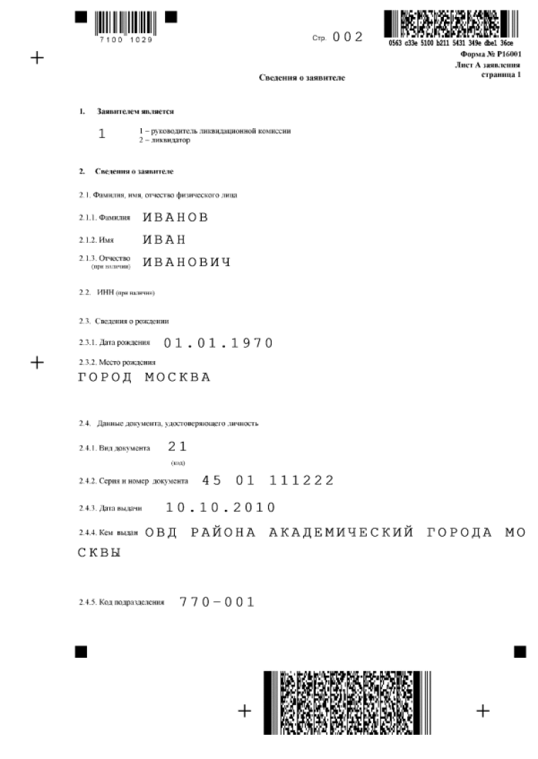 - Образец заполнения формы Р15001 при ликвидации ООО 2019