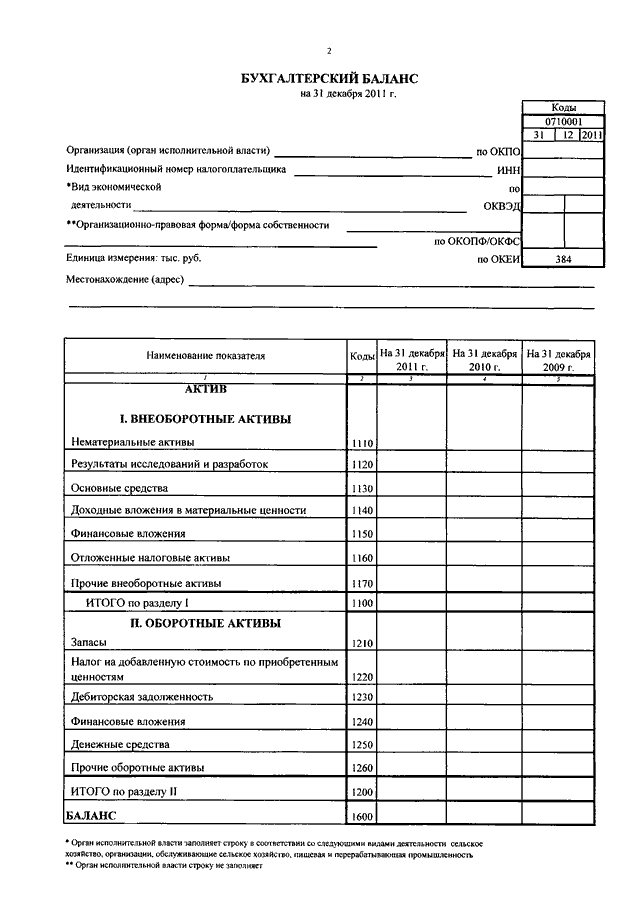 Образец баланса