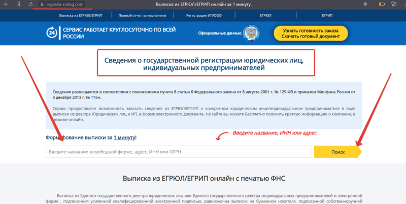 Форма по получению, транслируется с официального сайта ФНС — Федеральной налоговой службы России и предоставляет бесплатный поиск информации, внесенной в Единый государственный реестр.