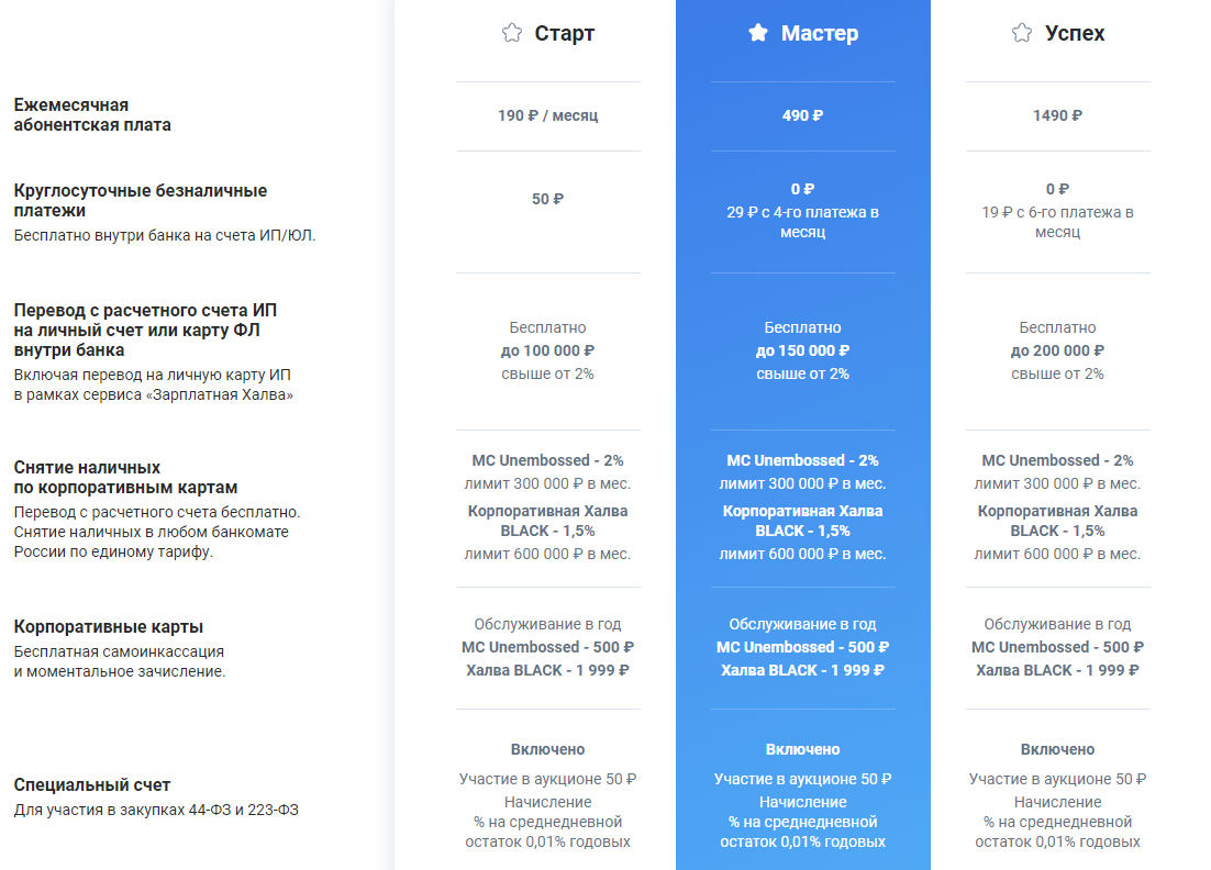 бизнес тарифы по обслуживанию ИП и юридических лиц