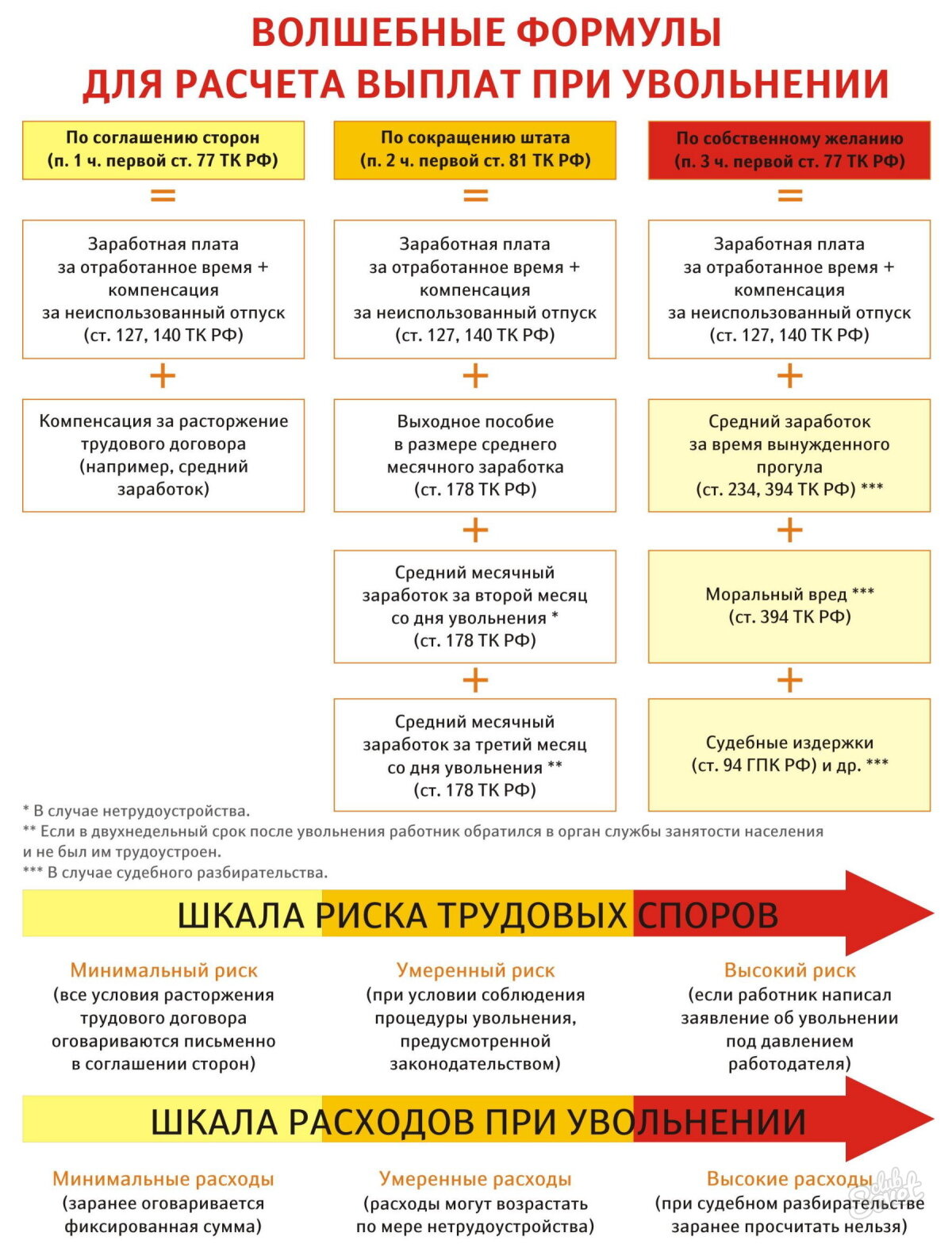 Если человека сокращают, то, кроме вышеперечисленного, ему выдают пособие за два месяца.