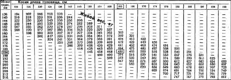 Таблица определения живой массы быка по промерамЧтобы узнать, сколько весит в 1 год живым весом бык, можно замерить самую объемную часть в области обхвата груди. Результат сравнивают с данными таблицы, причем она будет отличаться для каждой породы коров.
