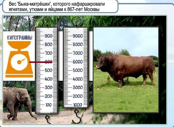 По полученным результатам и таблице узнают массу быка.