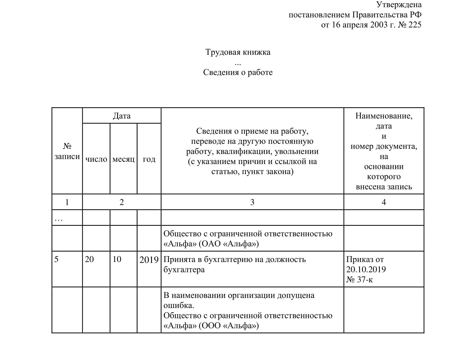 Если же перед обнаруженной неточностью есть записи, сделанные другими работодателями, надо провести официальную процедуру регистрации ошибки и отмены неверной формулировки.