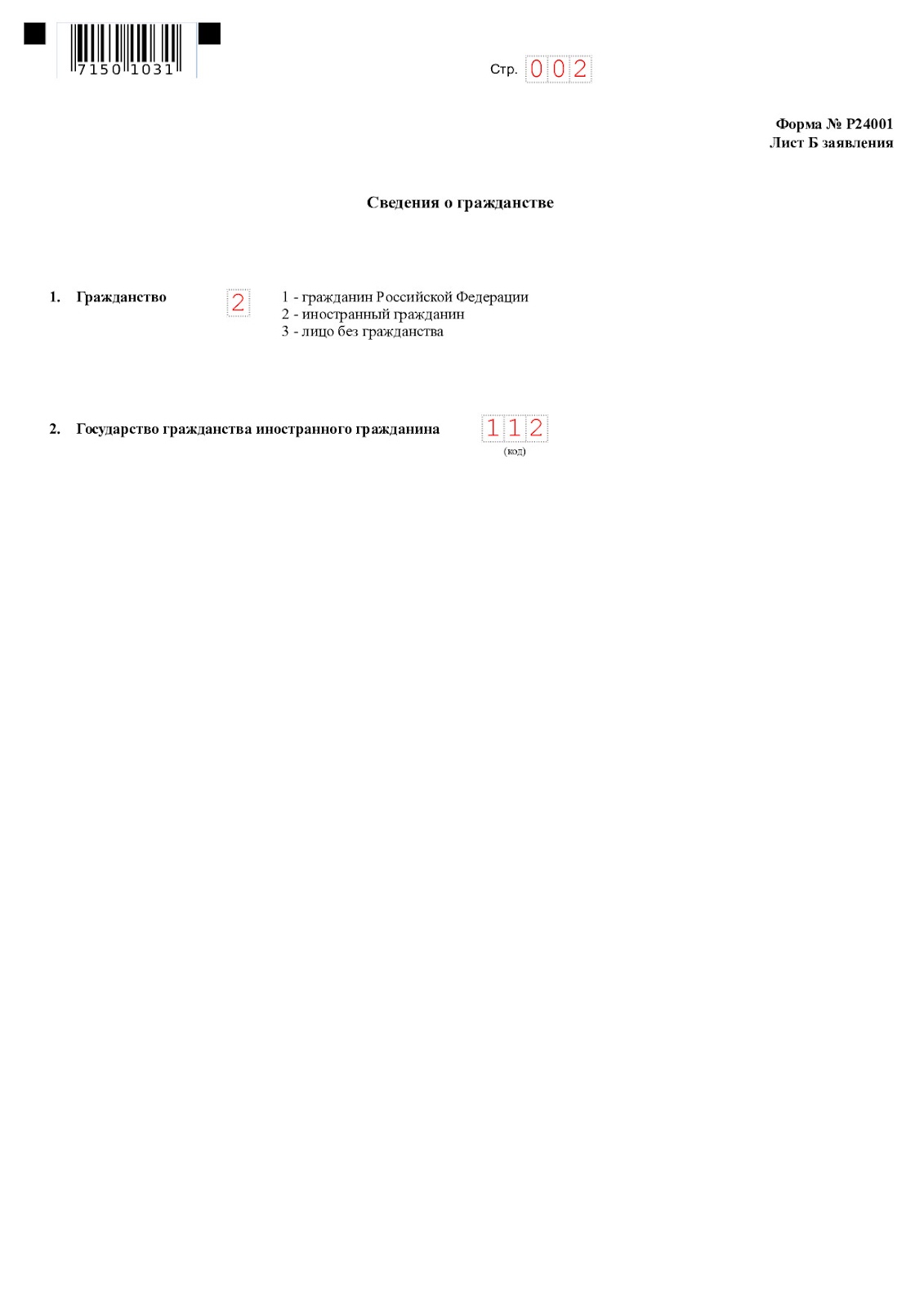 - Лист А заполняется лицом без гражданства в случае изменения имени и информации о рождении.